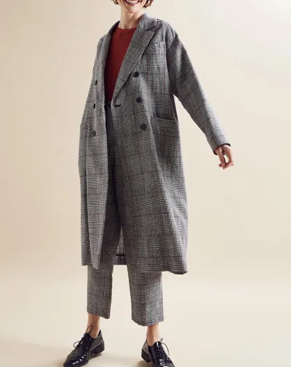Manteau en Lin mélangé Irene prince de galles noir/écru