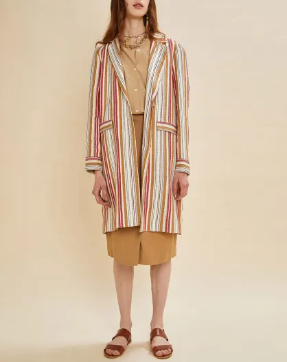 Manteau en Lin mélangé Greg à rayures rouge/écru/camel