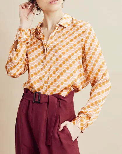 Chemise 100% Soie imprimée Cila rose/ocre