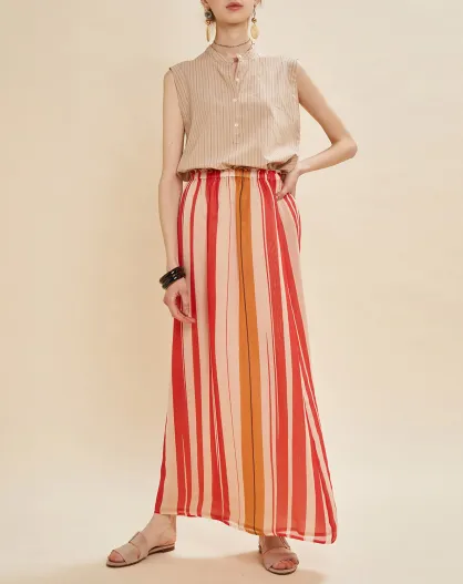 Jupe en voile 100% Soie Lionel rayée rouge