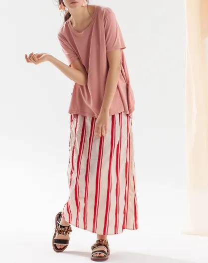 Jupe en Lin mélangé June à rayures rouge