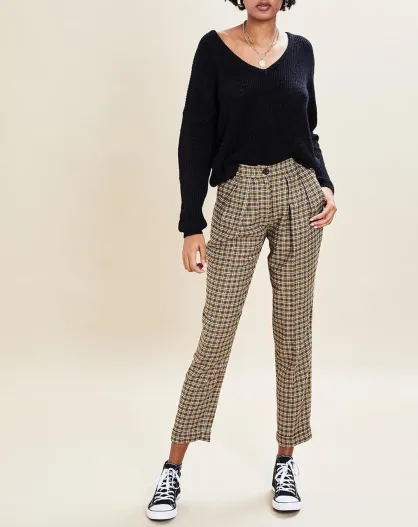 Pantalon en Laine mélangée Octave pied-de-poule ocre/noir