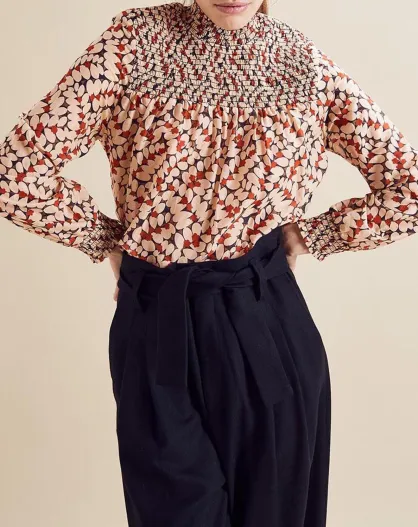 Blouse en Coton & Soie Bonheur imprimée vieux rose