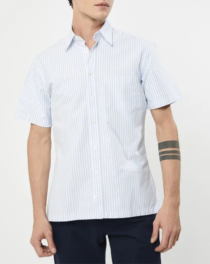 Chemise en coton épais Slim Fit Bat Oxford à rayures bleu ciel