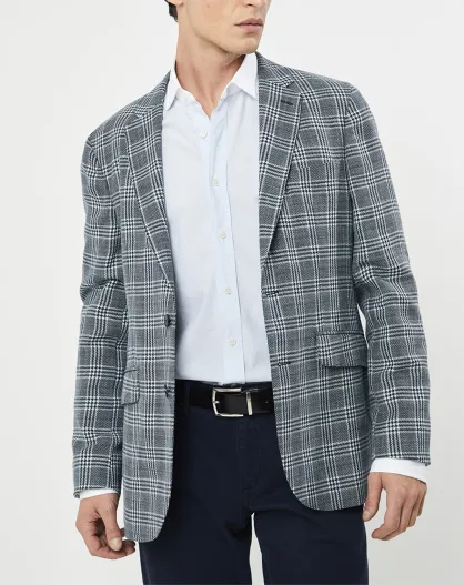 Veste en Lin & Laine mélangés Claire imprimée prince de galles bleue