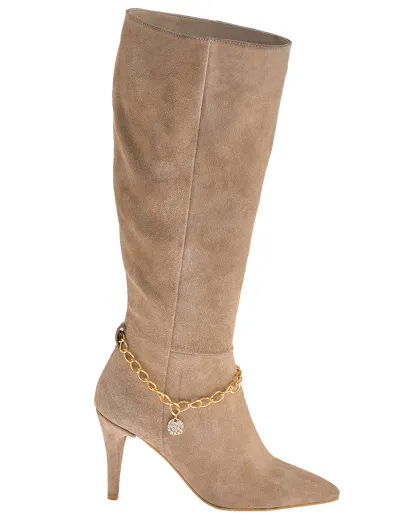Bottes en Velours Cuir Camelia beiges - Talon 9 cm