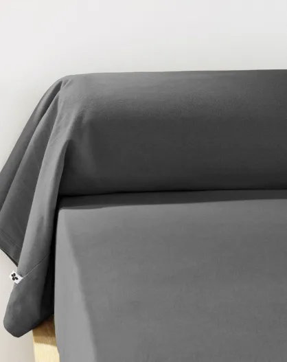 Taie de traversin en flanelle Candice Orage anthracite - 85x185 cm