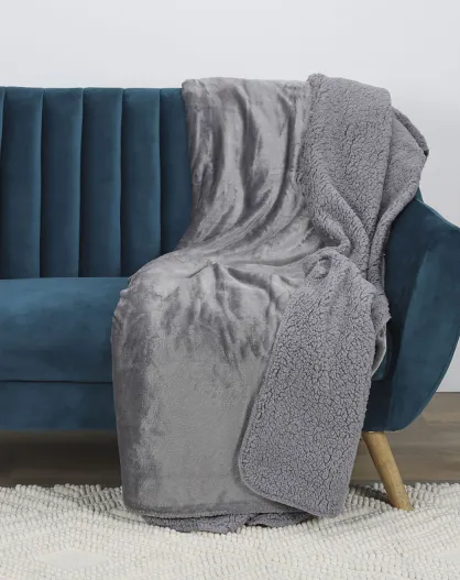 Plaid flanelle sherpa XXL gris foncé - 140x200 cm