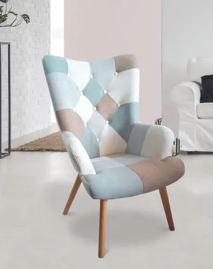 Fauteuil Helsinki patchwork bleu - 66x72x99.5 cm