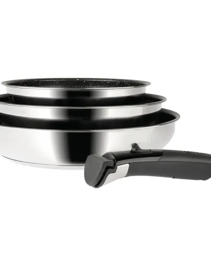 3 Poêles et un manche Sitramovible Arpeche induction gris/noir - D.20/24/28 cm