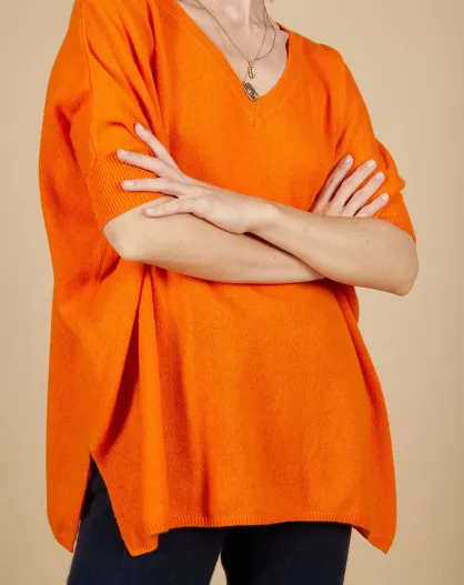 Pull poncho 100% Cachemire Kelly col V manches courtes mangue