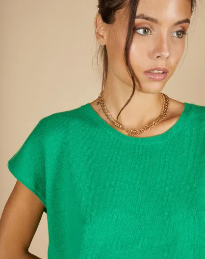 Pull 100% Cachemire Laurène manches courtes émeraude