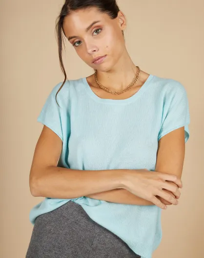 Pull 100% Cachemire Laurène manches courtes bleu océan