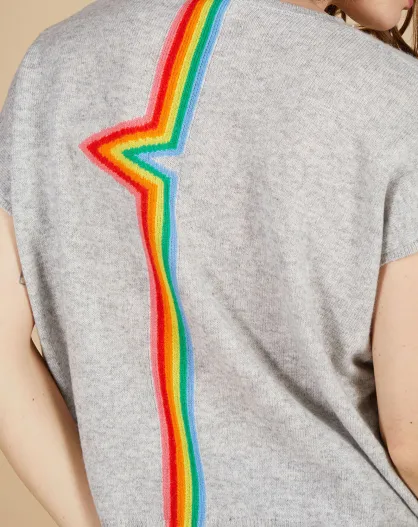 Pull 100% Cachemire Marion à bandes au dos gris chiné