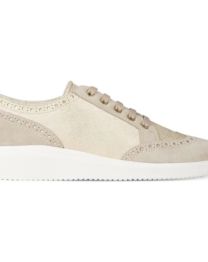 Sneakers en Velours de Cuir Tahina doré/taupe