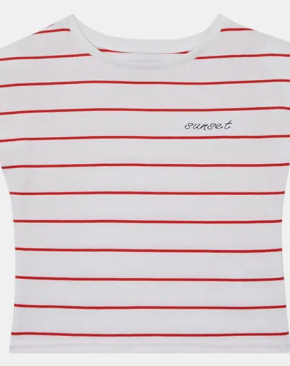 T-Shirt en Coton Mime à rayures blanc/rouge