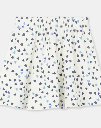 Jupe courte en Jersey de Coton bio Tatiana à cœurs blanc/bleu