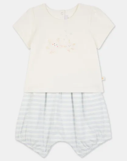 Ensemble T-Shirt & Bloomer Sola en Coton bio blanc/bleu