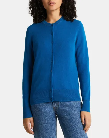 Cardigan 100% Cachemire Zacao col rond bleu méditerranée