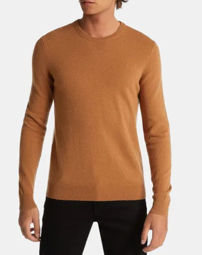 Pull 100% Cachemire Machron col rond camel