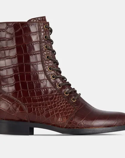 Bottines en Cuir croco marron