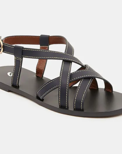 Sandales en Cuir brides coutures bleu marine