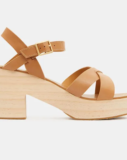 Sandales en Cuir brides croisées beiges - Talon 7 cm