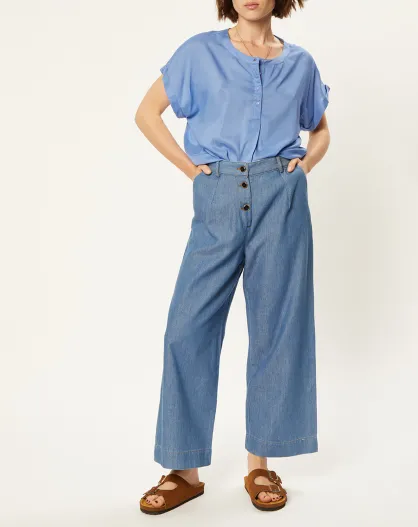 Caraco en soie imprimé avec détails en dentelle bleu et blanc
