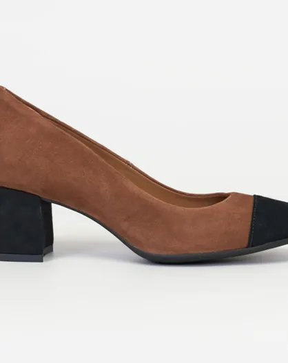 Escarpins en Velours de Cuir Sonia cognac/noir