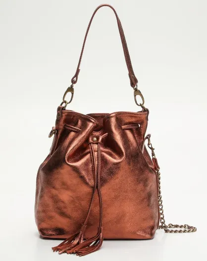 Sac seau en Cuir Malia bronze métallique - 24x13x28 cm