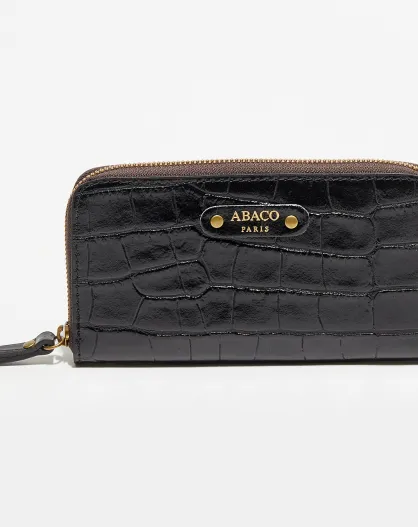 Portefeuille en Cuir croco Barbara noir - 20x11x2 cm