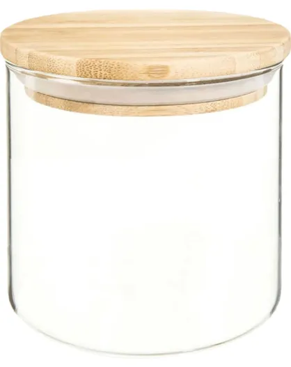 Bocal en Verre et Bambou transparent - 10x10x16 cm