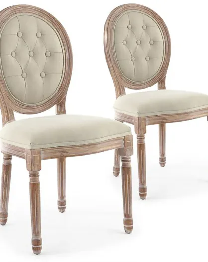 2 Chaises de style médaillon Louis XVI beiges - 49x46x96 cm