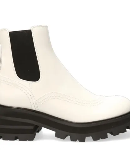 Chelsea Boots en Cuir ivoire/noir - Talon 6 cm