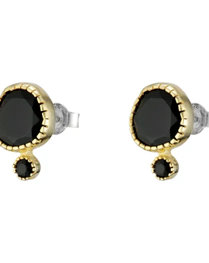 Boucles d'oreilles Duo Puces en Argent, Laiton & Onyx noir