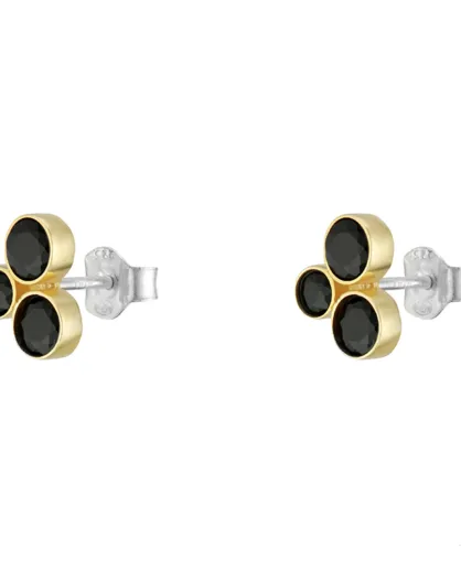 Boucles d'oreilles Trio Rond en Argent, Laiton & Onyx noir