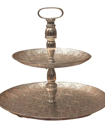 Plateau décoratif métal double argenté - 49x49x40 cm