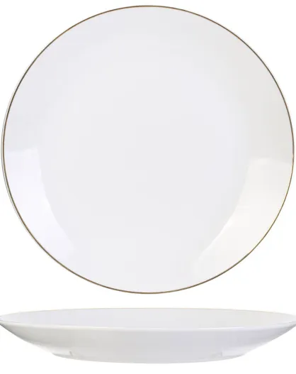 6 Assiettes en Porcelaine Liseré doré blanc/doré - D.27 cm