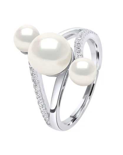 Bague ajustable Trilogy Argent rhodié, Zircone & Perles d'Eau Douce boutons blanc naturel