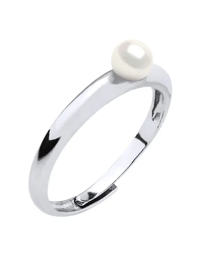 Bague ajustable Jonc Mini Argent rhodié & Perle d'Eau Douce bouton blanc naturel