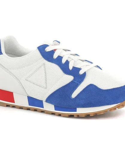 Sneakers en Velours de Cuir & Mesh Omega Made in France blanc/bleu/rouge