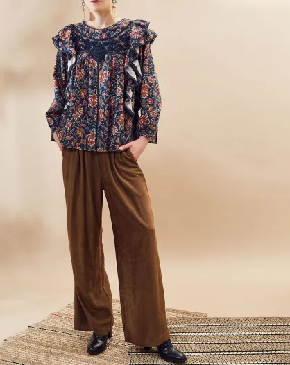Pantalon ample en Velours côtelé fin Dandelion camel foncé
