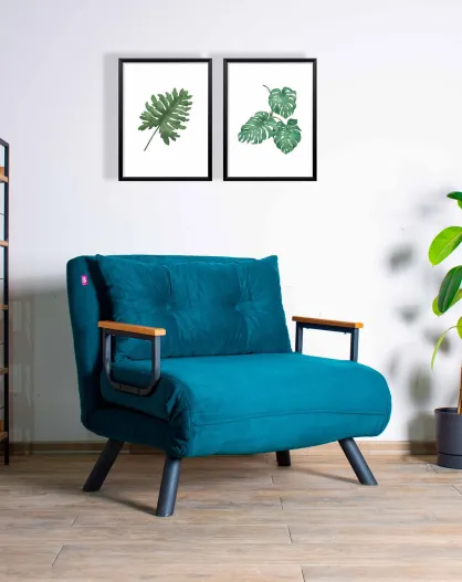 Fauteuil convertible Sando vert pétrole - 60x50x42 cm