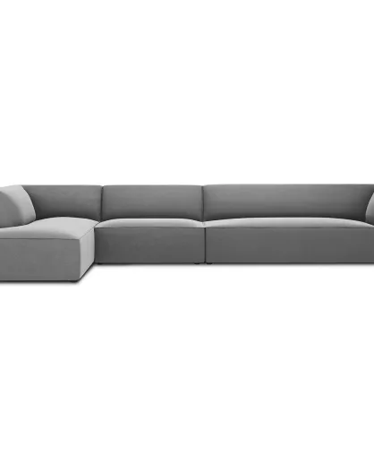 Canapé d'angle gauche 5 places velours Sao gris clair - 366x180x69 cm