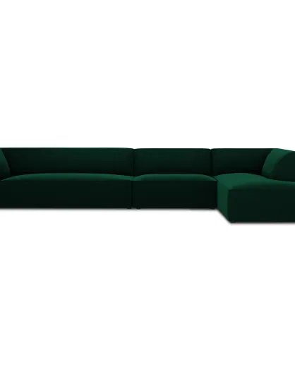 Canapé d'angle droit 5 places velours Sao vert bouteille - 366x180x69 cm