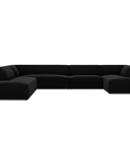 Canapé d'angle panoramique gauche velours Sao 7 places noir - 366x273x69 cm