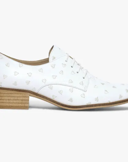Derbies en Cuir brodé coeurs Cipriano blanches