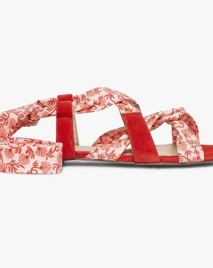 Sandales en Cuir & Tissu imprimé Juillet cerise