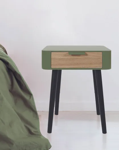 Chevet 1 tiroir vert/kaki/noir - 35x48x40 cm