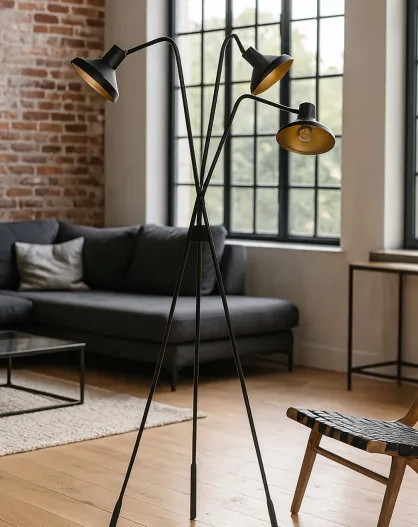 Lampadaire trépied Snake noir/doré - 41x41x158 cm